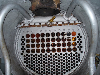...e vista all'interno della sua caldaia: notare il fascio tubiero totalmente nuovo.